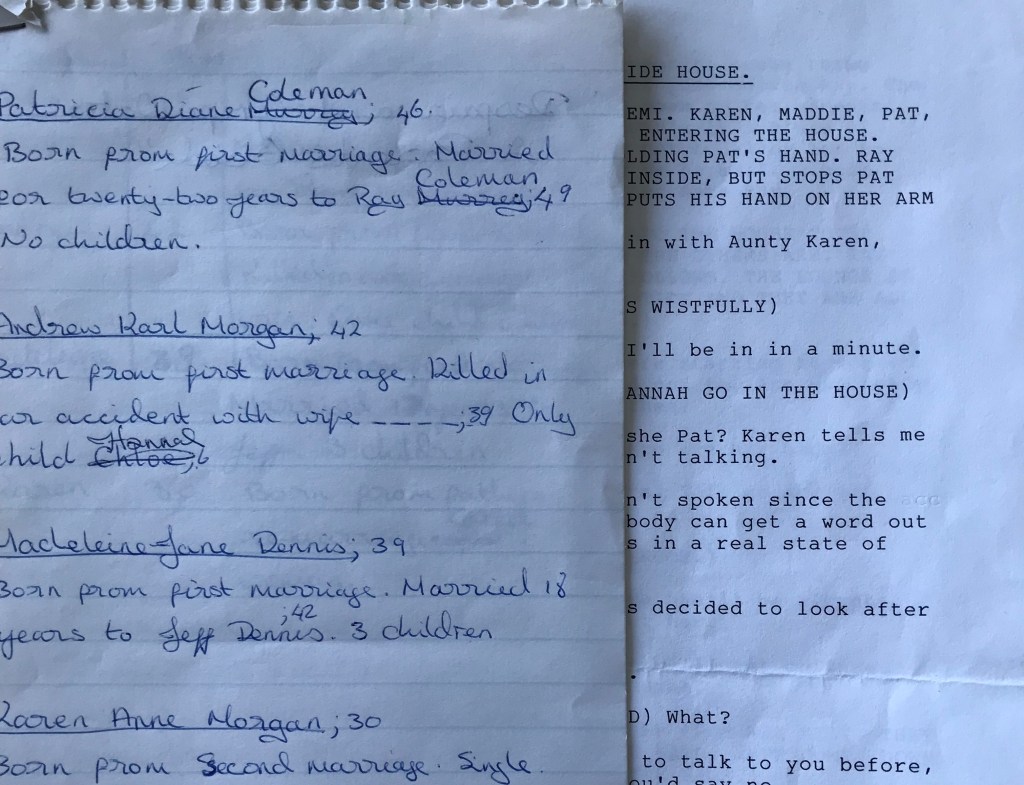 It was a script I was working on. I must have been about 20 years old at this point. Quite ambitious really. If I remember correctly, I bought a book on script writing to learn the layout. I think that early commendation about having an ear for dialogue stuck with me. There are only a couple of pages of the script with a few handwritten notes.