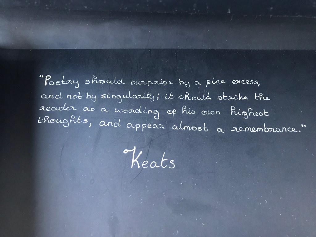 In the back interior of the folder I had written this quote by Keats. I kept it there as a reminder of how I wanted to view and write poetry.