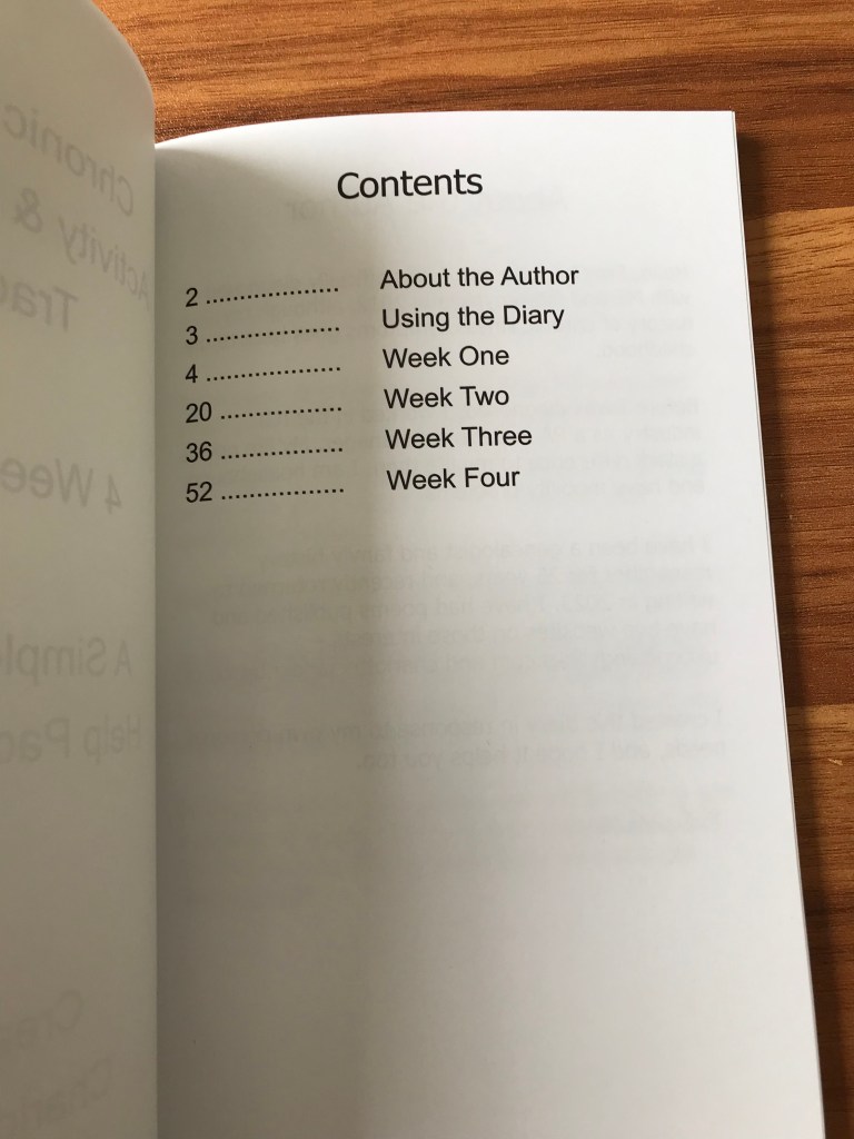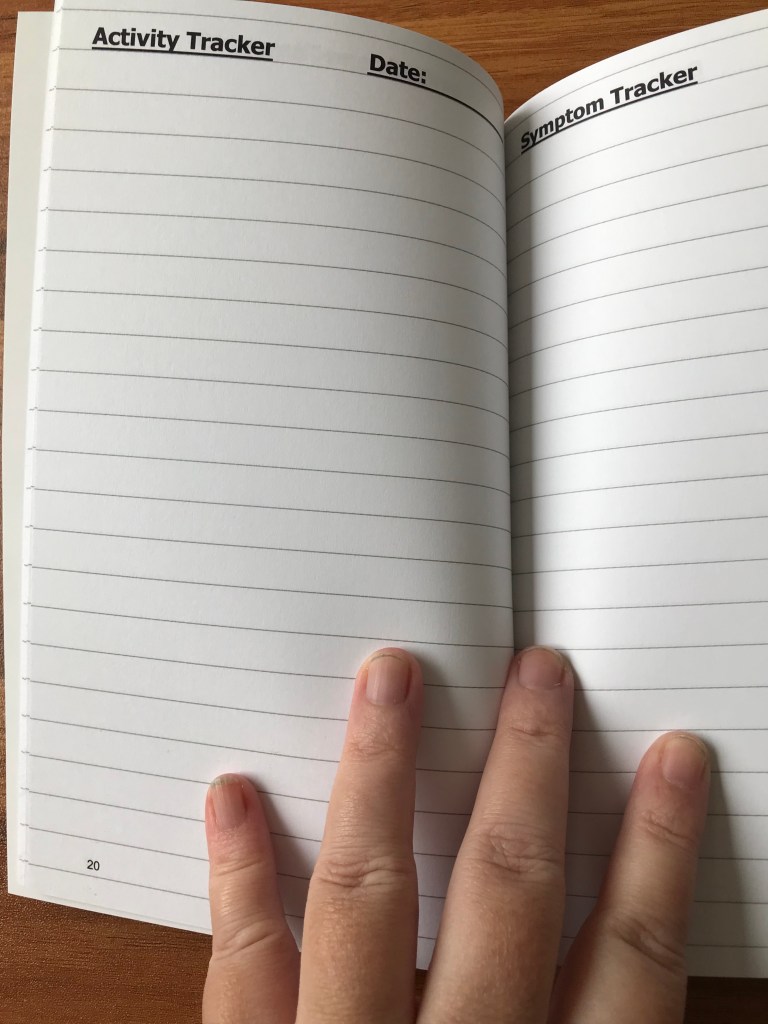 This book has been designed for anyone with a chronic illness to help track their activity and symptoms.